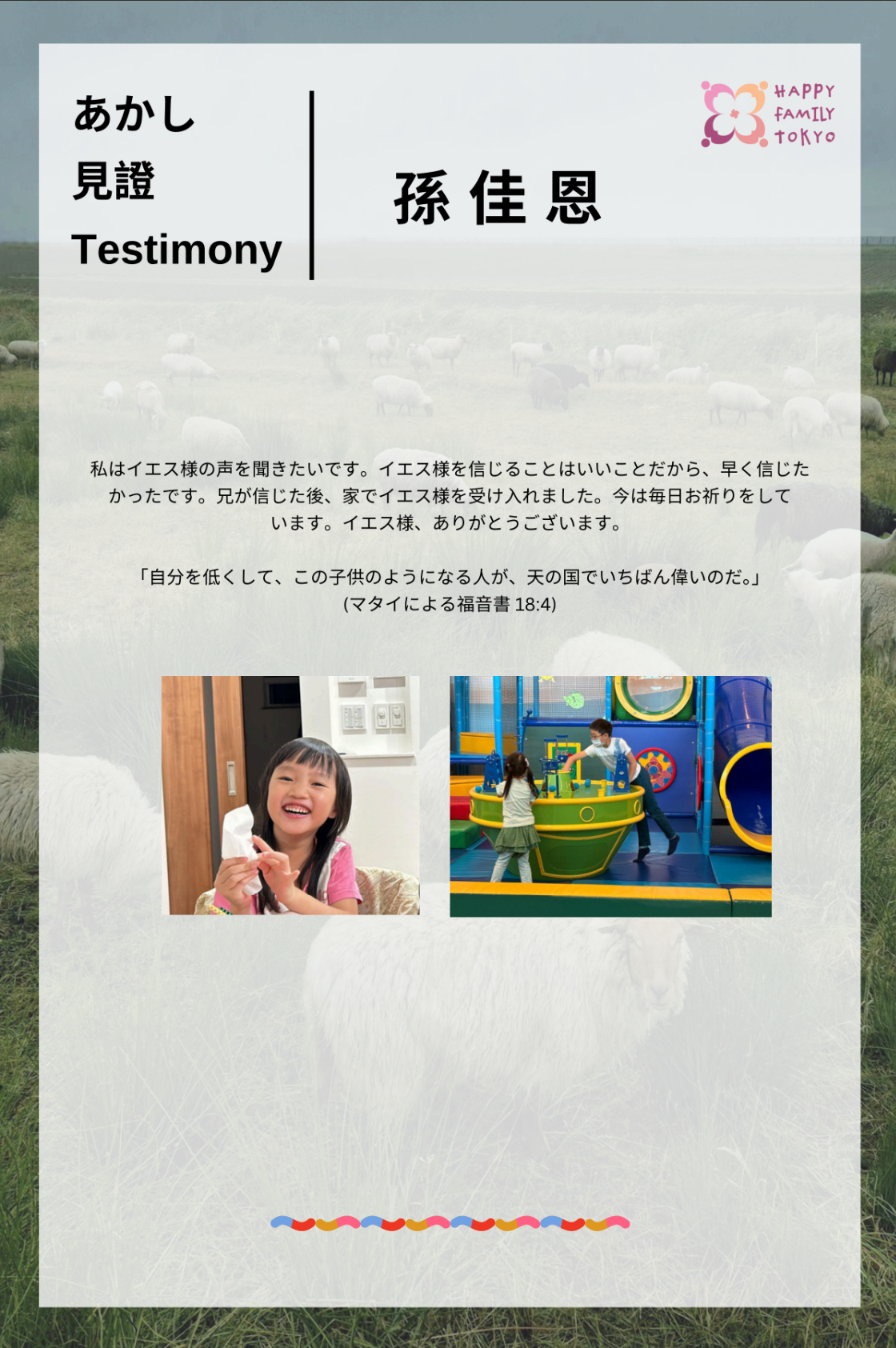 孫佳恩 証 11月1日 文: IPGデザイン Youtube: 2025年11月01日 |孫佳恩の証しのシェア ダウンロード (日/中) 東京tokyochurch聚会家族国際东京教会友達を作りたい粵語聚會 IPGデザイン