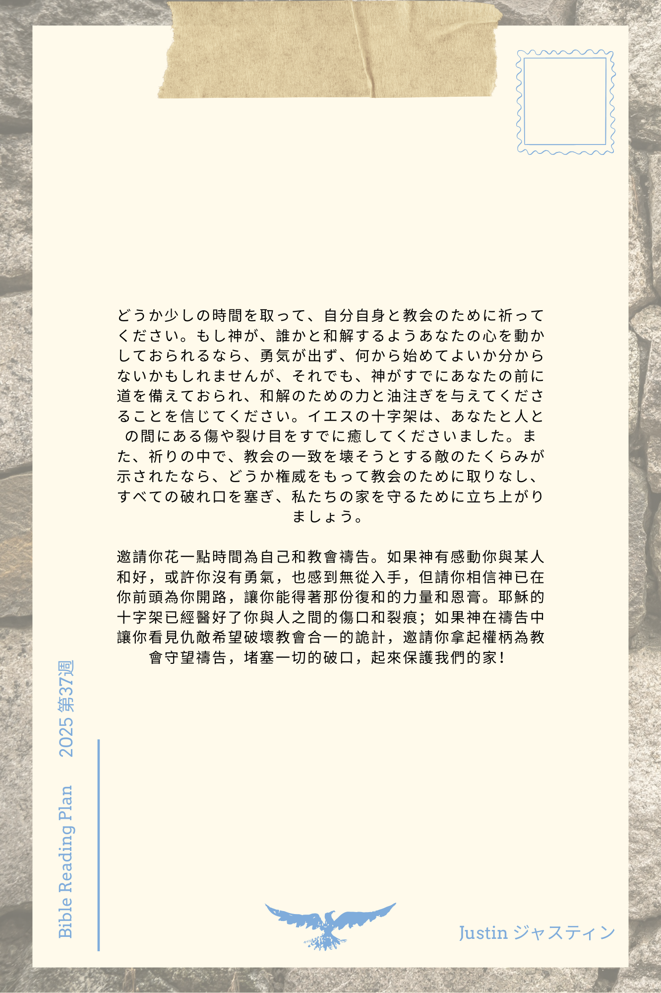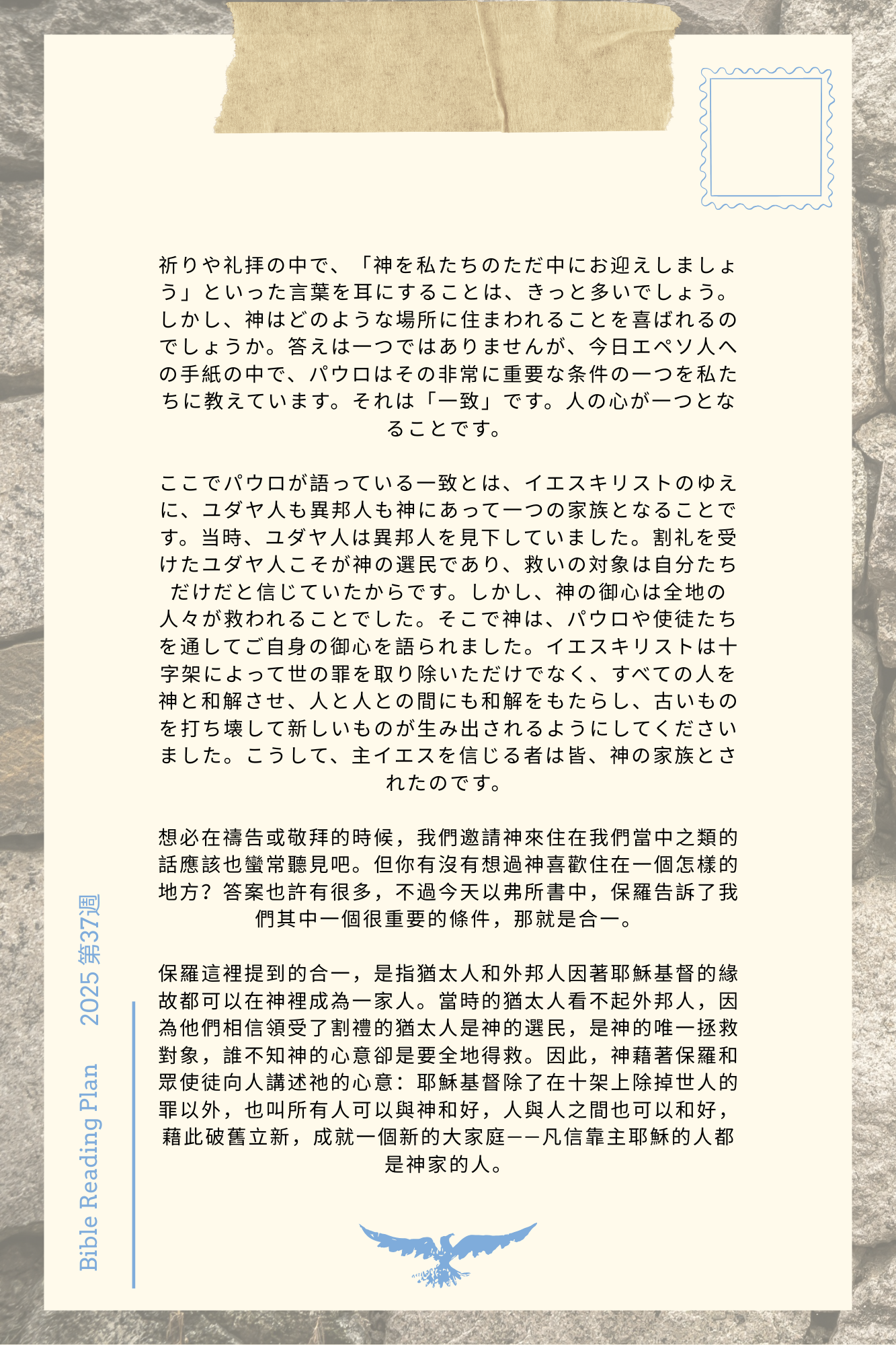 以弗所書 (第37週) Faith Chu讀經 31 Dec Written By IPG Design — Justin ジャスティン 東京tokyochurch聚会家族国際东京教会友達を作りたい粵語聚會 IPG Design