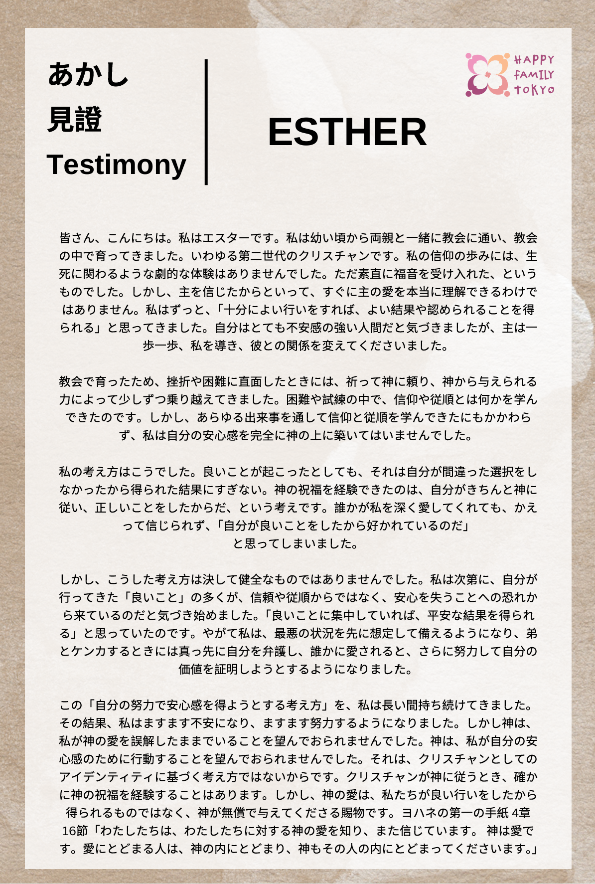 Esther 見證 7 Feb Written By IPG Design Youtube: 2026年2月7日 |Esther見證分享 下載見證 (日/中) 東京tokyochurch聚会家族国際东京教会友達を作りたい粵語聚會 IPG Design
